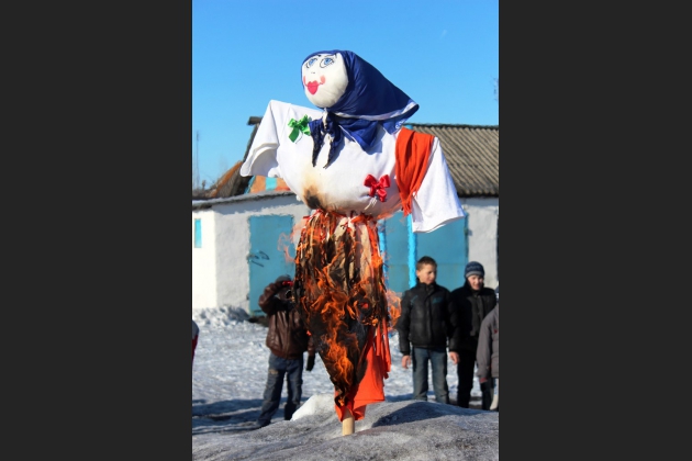 По традиции закончился праздник чаепитием с блинами и сжиганием чучела Масленицы — символа ухода зимы и наступления весны.